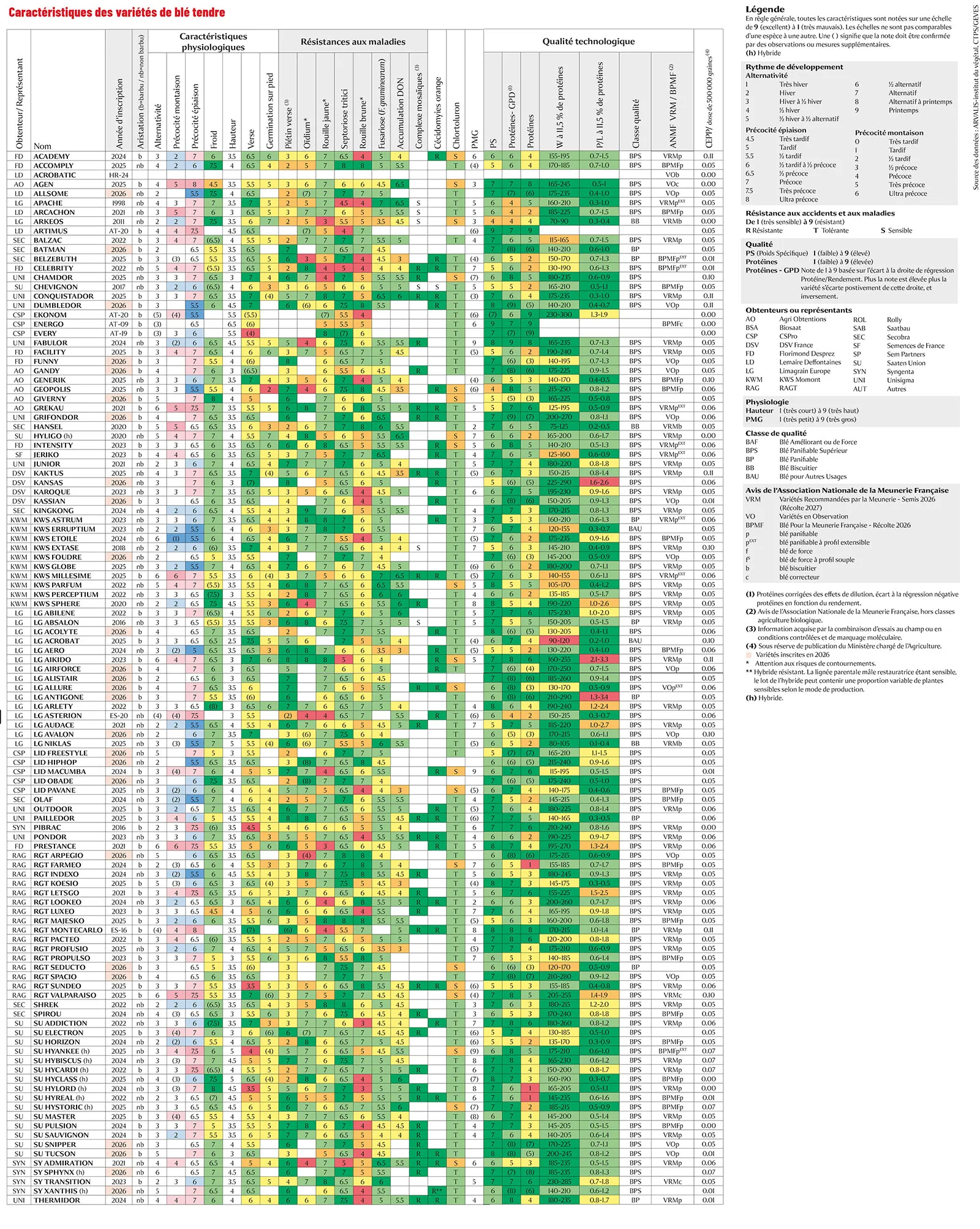 • Promotion 2026 : vingt-six nouvelles variétés de blé tendre panifiables