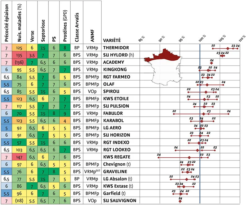 La pression exceptionnelle de septoriose en 2024 a pénalisé les variétés sensibles dans les régions du nord et du centre de la France.